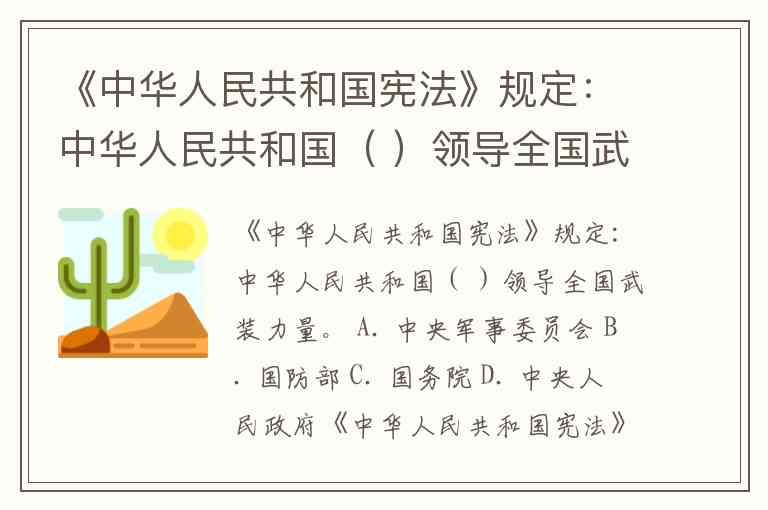 《中华人民共和国宪法》规定:中华人民共和国( )领导全国武装力量。 A. 中央军事委员会 B. 国防部 C. 国务院 D. 中央人民政府