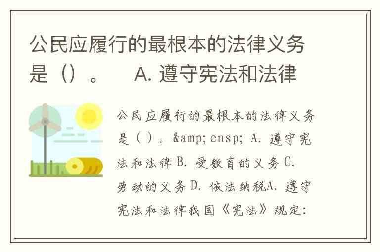 公民应履行的最根本的法律义务是()。 A. 遵守宪法和法律 B. 受教育的义务 C. 劳动的义务 D. 依法纳税