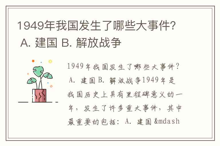 1949年我国发生了哪些大事件? A. 建国 B. 解放战争