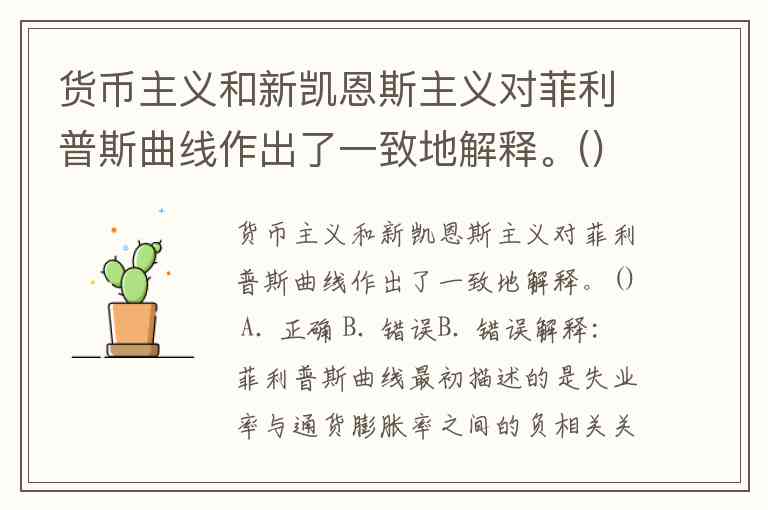 货币主义和新凯恩斯主义对菲利普斯曲线作出了一致地解释。() A. 正确 B. 错误