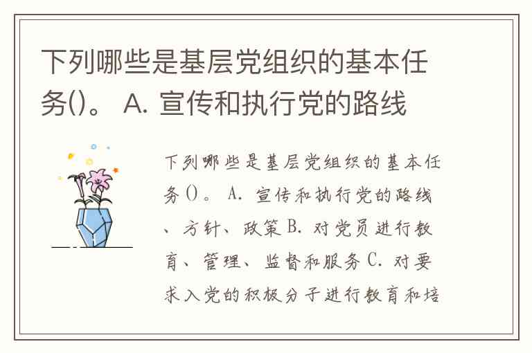 下列哪些是基层党组织的基本任务()。 A. 宣传和执行党的路线、方针、政策 B. 对党员进行教育、管理、监督和服务 C. 对要求入党的积极分子进行教育和培养,做好经常性的发展党员工作 D. 审议党的路线、方针、政策
