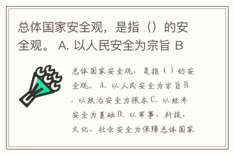 总体国家安全观,是指以人民安全为宗旨、以政治安全为根本、以经济安全为基础、以军事、科技、文化、社会安全为保障的安全观。