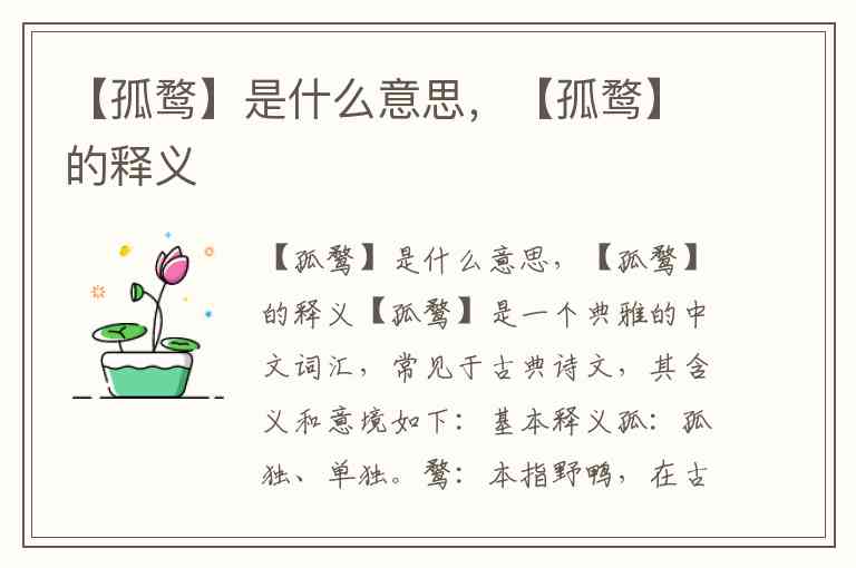 【孤鹜】是一个典雅的中文词汇,常见于古典诗文,其含义和意境如下: