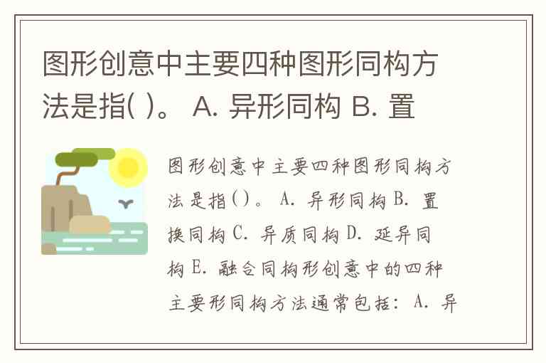 图形创意中主要四种图形同构方法是指( )。 A. 异形同构 B. 置换同构 C. 异质同构 D. 延异同构 E. 融合同构