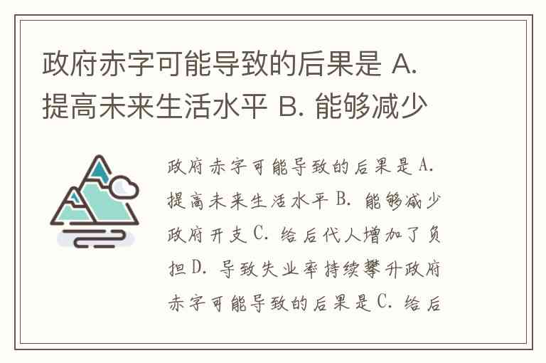 政府赤字可能导致的后果是 A. 提高未来生活水平 B. 能够减少政府开支 C. 给后代人增加了负担 D. 导致失业率持续攀升
