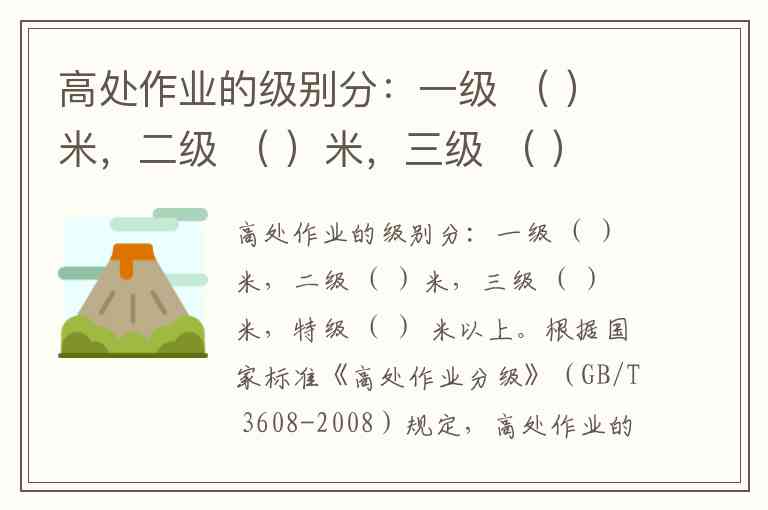 根据国家标准《高处作业分级》(GB/T 3608-2008)规定,高处作业的级别划分如下: