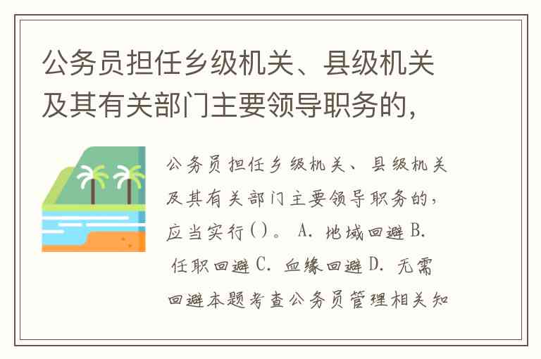 公务员担任乡级机关、县级机关及其有关部门主要领导职务的,应当实行( )。 A. 地域回避 B. 任职回避 C. 血缘回避 D. 无需回避