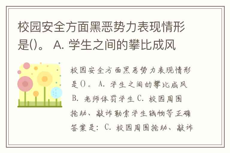 正确答案是:C. 校园周围抢劫、敲诈勒索学生钱物等