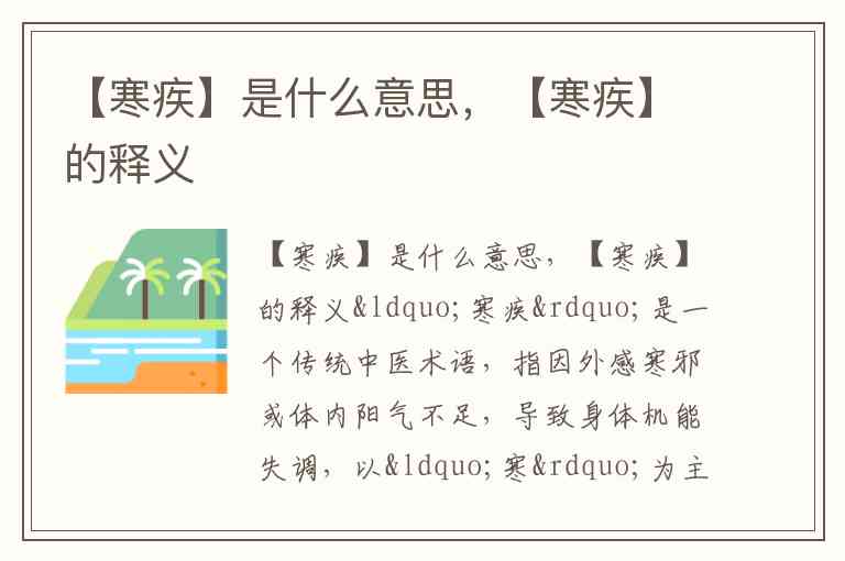“寒疾”是一个传统中医术语,指因外感寒邪或体内阳气不足,导致身体机能失调,以“寒”为主要特征的一类疾病。