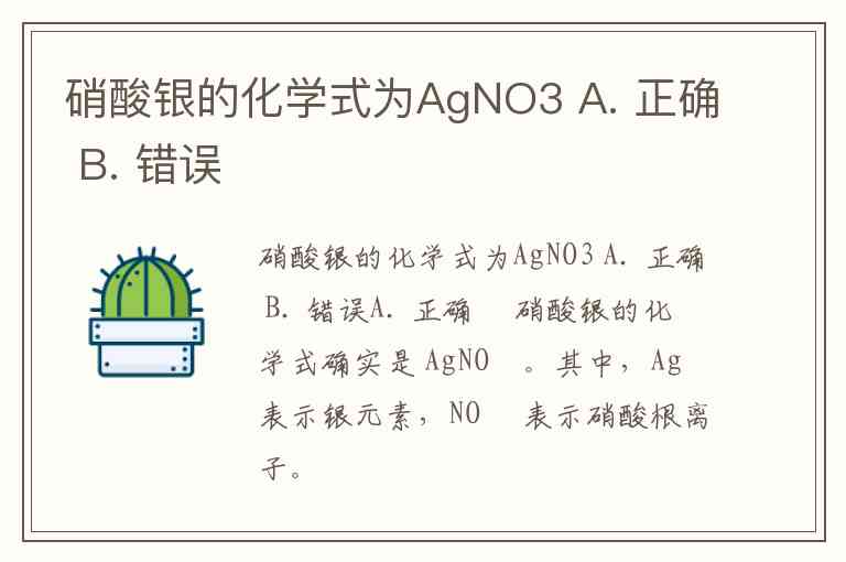 硝酸银的化学式为AgNO3 A. 正确 B. 错误