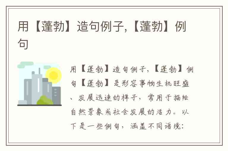【蓬勃】是形容事物生机旺盛、发展迅速的样子,常用于描绘自然景象或社会发展的活力。以下是一些例句,涵盖不同语境: