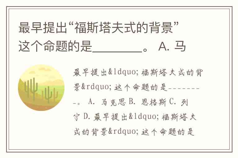 最早提出“福斯塔夫式的背景”这个命题的是________。 A. 马克思 B. 恩格斯 C. 列宁 D.