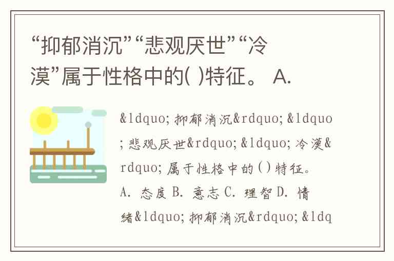 “抑郁消沉”“悲观厌世”“冷漠”属于性格中的( )特征。 A. 态度 B. 意志 C. 理智 D. 情绪