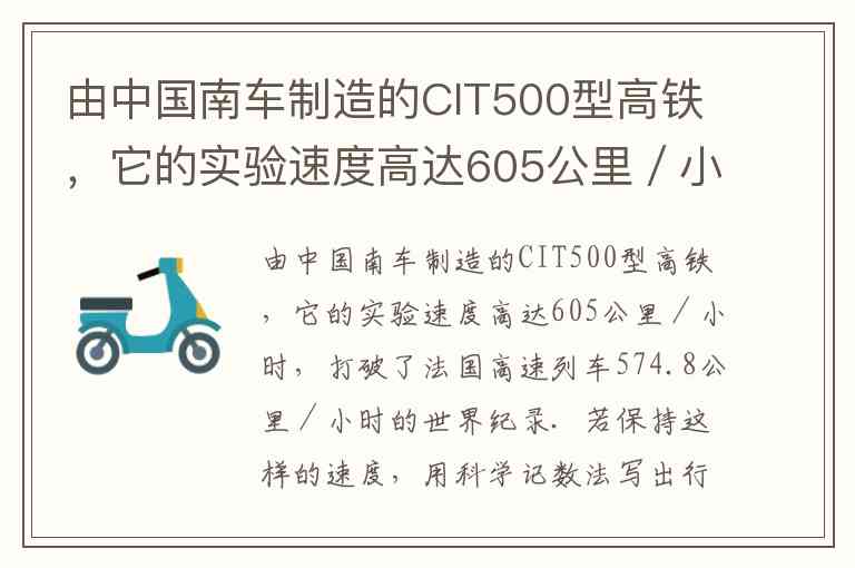 由中国南车制造的CIT500型高铁,它的实验速度高达605公里/小时,打破了法国高速列车574.8公里/小时的世界纪录.若保持这样的速度,用科学记数法写出行驶10小时的路程为( ) A. 6.05X10⁴公里 B. 6.05X10³公里 C. 6.05X10⁵公里 D. 0.605X10³公里