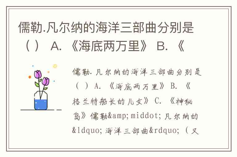 儒勒.凡尔纳的海洋三部曲分别是( ) A. 《海底两万里》 B. 《格兰特船长的儿女》 C. 《神秘岛》
