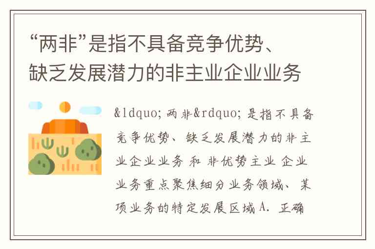 “两非”是指不具备竞争优势、缺乏发展潜力的非主业企业业务 和 非优势主业 企业业务重点聚焦细分业务领域、某项业务的特定发展区域 A. 正确 B. 错误