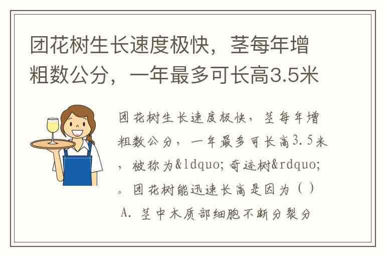 要分析团花树能迅速长高的原因,我们得先明确:题干问的是迅速长高,即纵向生长(增高),而不是横向增粗。