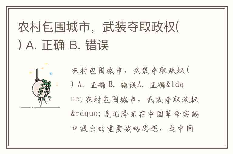 农村包围城市,武装夺取政权( ) A. 正确 B. 错误