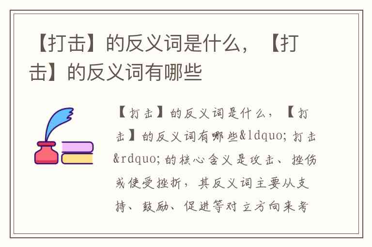“打击”的核心含义是攻击、挫伤或使受挫折,其反义词主要从支持、鼓励、促进等对立方向来考虑。