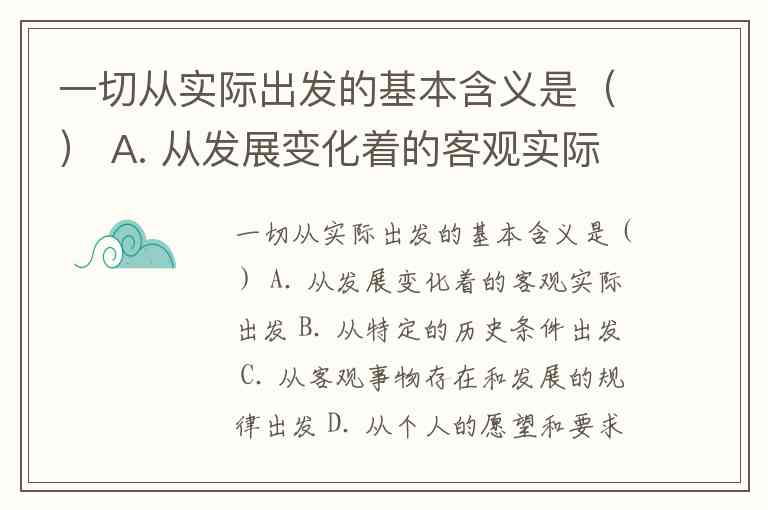 一切从实际出发的基本含义是() A. 从发展变化着的客观实际出发 B. 从特定的历史条件出发 C. 从客观事物存在和发展的规律出发 D. 从个人的愿望和要求出发