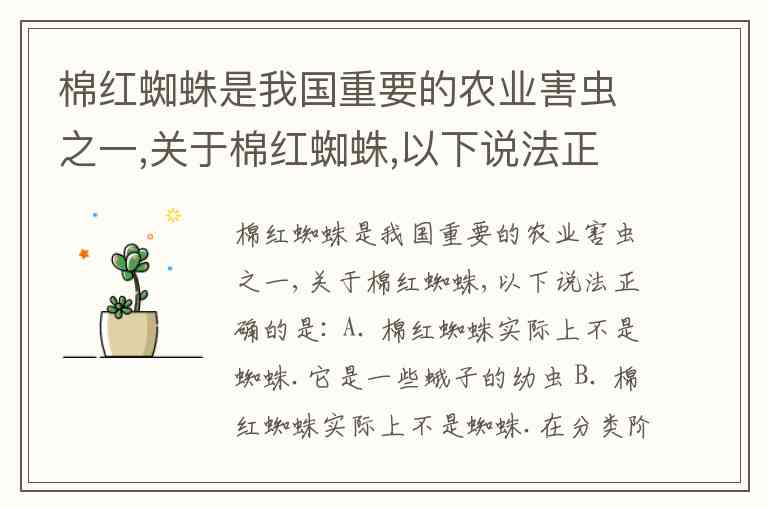 前半句正确:棉红蜘蛛不是真正的蜘蛛,是叶螨。