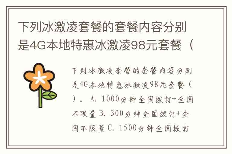 根据题目“4G本地特惠冰激凌98元套餐”的名称判断,这是中国联通早期推出的一款冰激凌套餐。