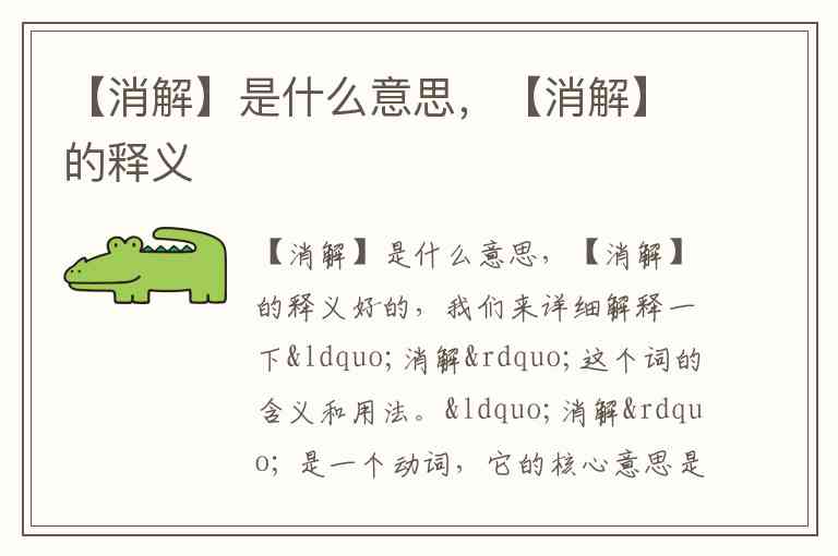 好的,我们来详细解释一下“消解”这个词的含义和用法。