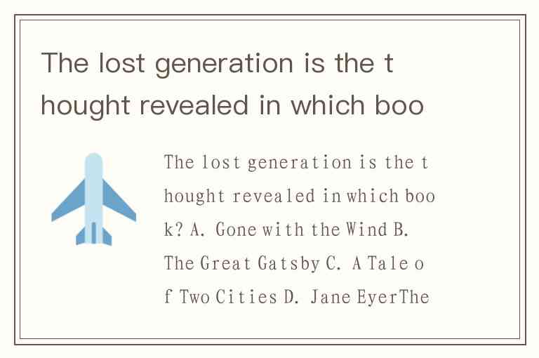 The lost generation is the thought revealed in which book? A. Gone with the Wind B. The Great Gatsby C. A Tale of Two Cities D. Jane Eyer