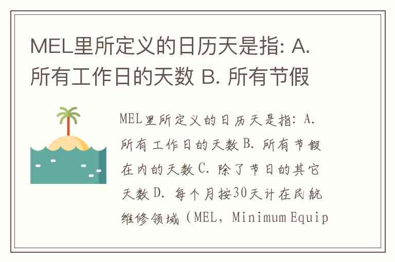 MEL里所定义的日历天是指: A. 所有工作日的天数 B. 所有节假在内的天数 C. 除了节日的其它天数 D. 每个月按30天计
