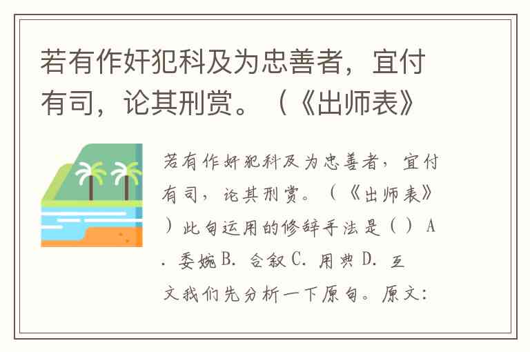 若有作奸犯科及为忠善者,宜付有司,论其刑赏。(《出师表》)此句运用的修辞手法是() A. 委婉 B. 合叙 C. 用典 D. 互文