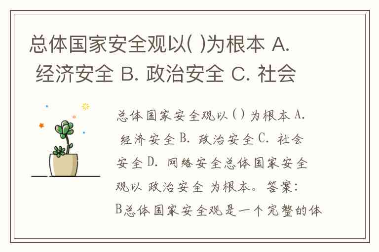 总体国家安全观以( )为根本 A. 经济安全 B. 政治安全 C. 社会安全 D. 网络安全