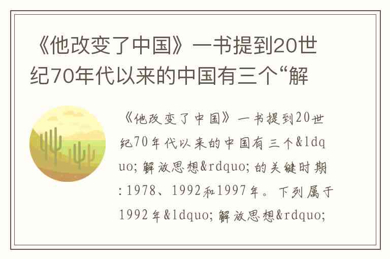 《他改变了中国》一书提到20世纪70年代以来的中国有三个“解放思想”的关键时期:1978、1992和1997年。下列属于1992年“解放思想”的表现是 A. 正式提出开放的伟大决策 B. 明确提出初级阶段理论 C. 明确提出经济体制的目标 D. 进一步完善市场经济理论