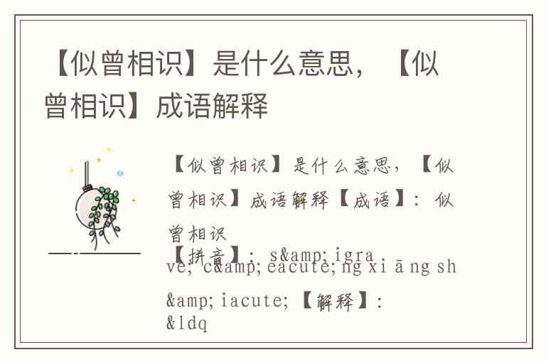 【似曾相识】是什么意思,【似曾相识】成语解释