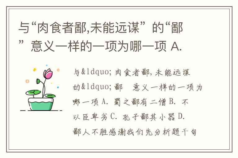 与“肉食者鄙,未能远谋〞的“鄙〞意义一样的一项为哪一项 A. 蜀之鄙有二僧 B. 不以臣卑劣 C. 孔子鄙其小器 D. 鄙人不胜感谢