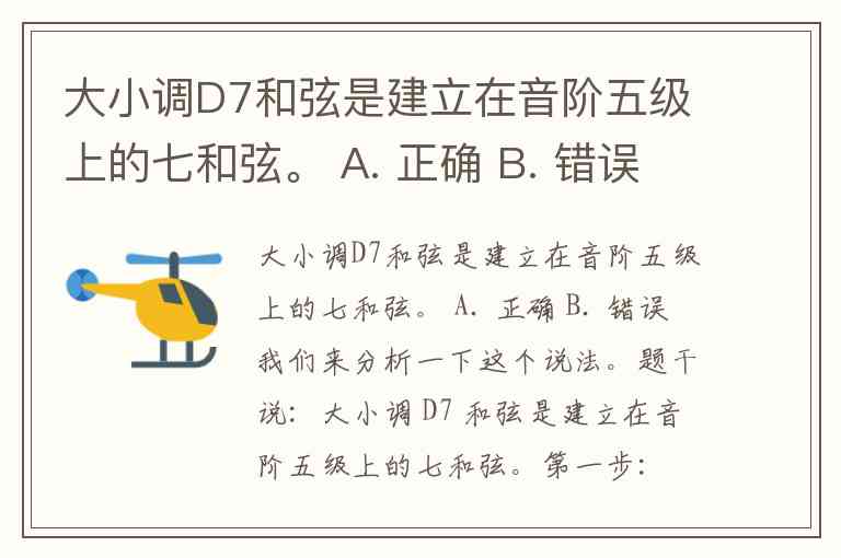 但题干并没有指定调,只说“大小调 D7 和弦是建立在音阶五级上的七和弦”——这句话有歧义,因为它暗示对于任何大小调 D7 都是五级七和弦,这显然不对。