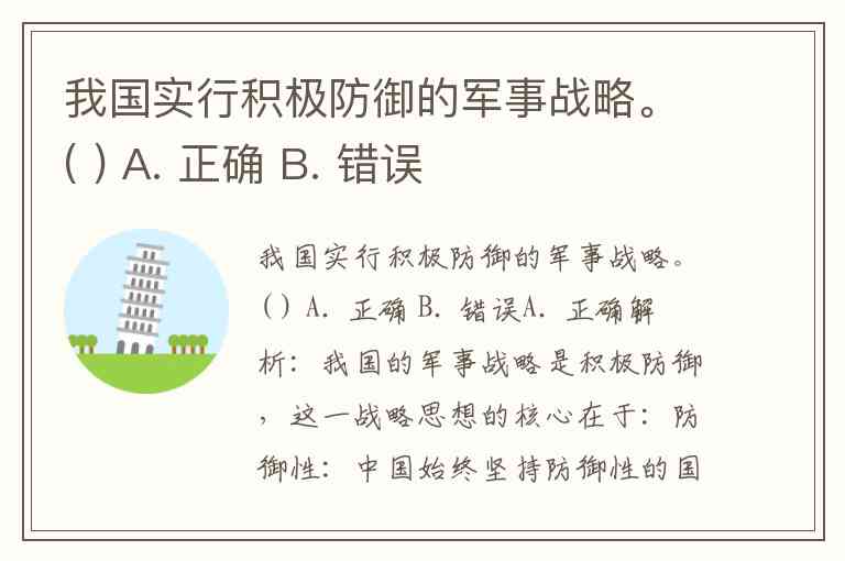 我国实行积极防御的军事战略。( ) A. 正确 B. 错误