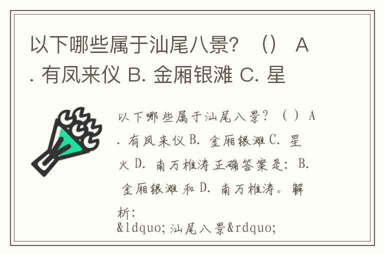 以下哪些属于汕尾八景?() A. 有凤来仪 B. 金厢银滩 C. 星火 D. 南万椎涛