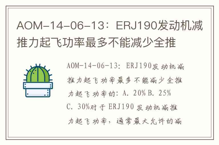 AOM-14-06-13:ERJ190发动机减推力起飞功率最多不能减少全推力起飞功率的: A. 20% B. 25% C. 30%