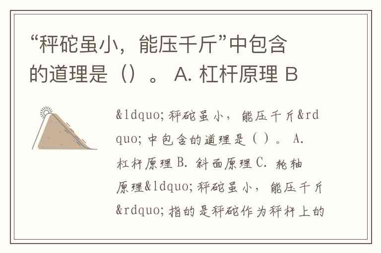 “秤砣虽小,能压千斤”中包含的道理是()。 A. 杠杆原理 B. 斜面原理 C. 轮轴原理