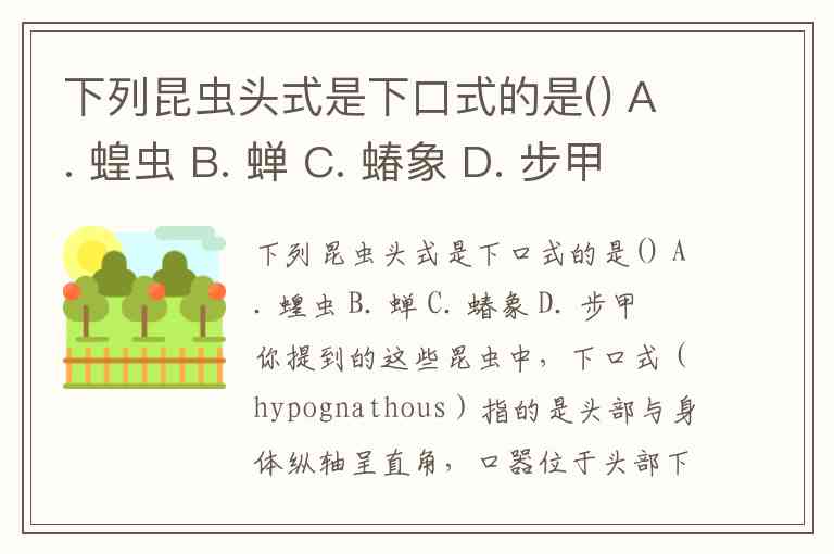 你提到的这些昆虫中,下口式(hypognathous)指的是头部与身体纵轴呈直角,口器位于头部下方,适合取食植物或地面的食物。