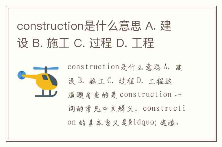 construction是什么意思 A. 建设 B. 施工 C. 过程 D. 工程