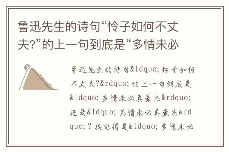 鲁迅先生的诗句“怜子如何不丈夫?”的上一句到底是“多情未必真豪杰”还是“无情未必真豪杰”? 我记得是“多情未必真豪杰”,求完整原诗及出处.