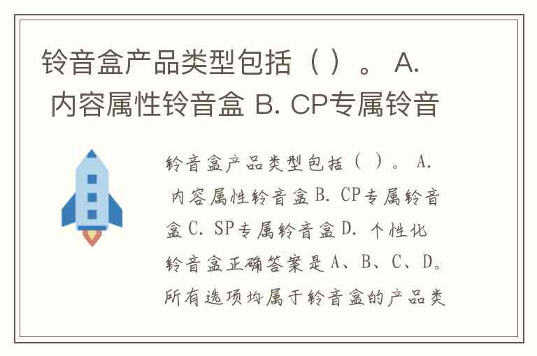 铃音盒产品类型包括( )。 A. 内容属性铃音盒 B. CP专属铃音盒 C. SP专属铃音盒 D. 个性化铃音盒