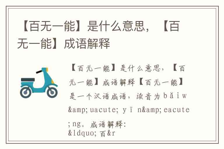 【百无一能】是一个汉语成语,读音为 bǎi wú yī néng。