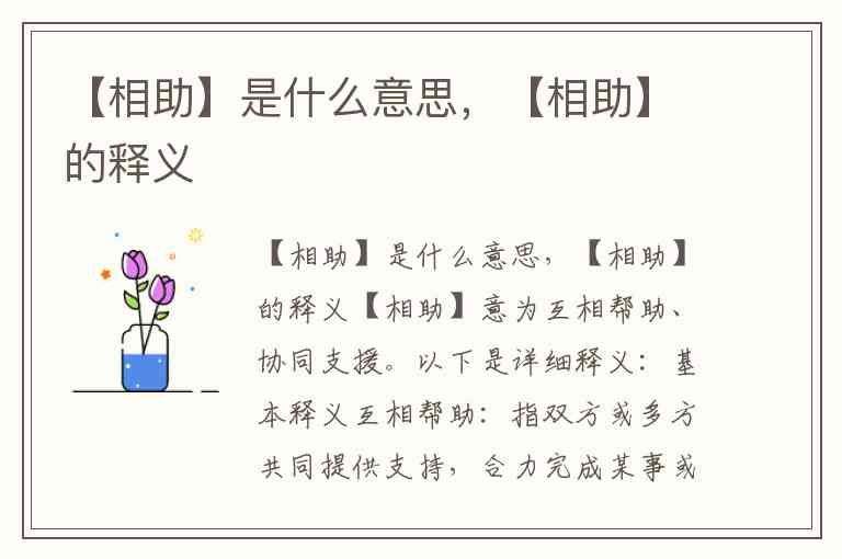 【相助】意为互相帮助、协同支援。以下是详细释义: