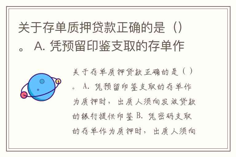 A. 凭预留印鉴支取的存单作为质押时,出质人须向发放贷款的银行提供印鉴