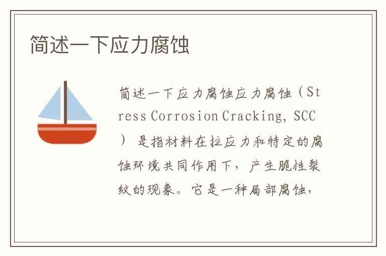 总之,应力腐蚀是力学、材料学、电化学交叉领域的一种危险失效形式,在工程设计和维护中必须高度重视。