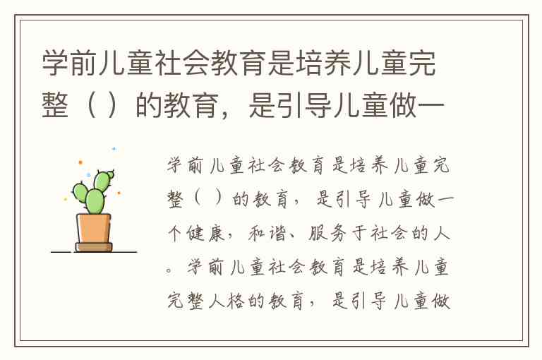 学前儿童社会教育是培养儿童完整( )的教育,是引导儿童做一个健康,和谐、服务于社会的人。