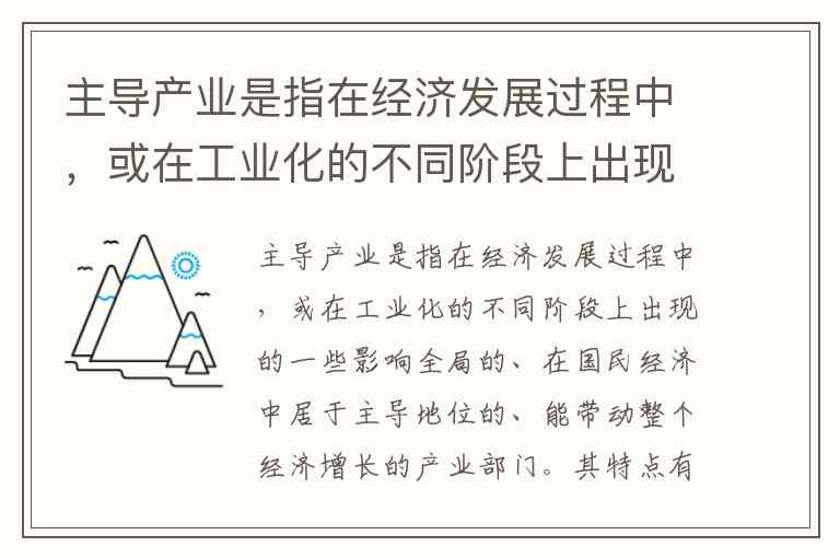 B项正确:主导产业具有阶段性特征,不同国家或同一国家不同发展阶段的主导产业会有所不同(例如从纺织业→钢铁业→汽车业→信息技术业)。