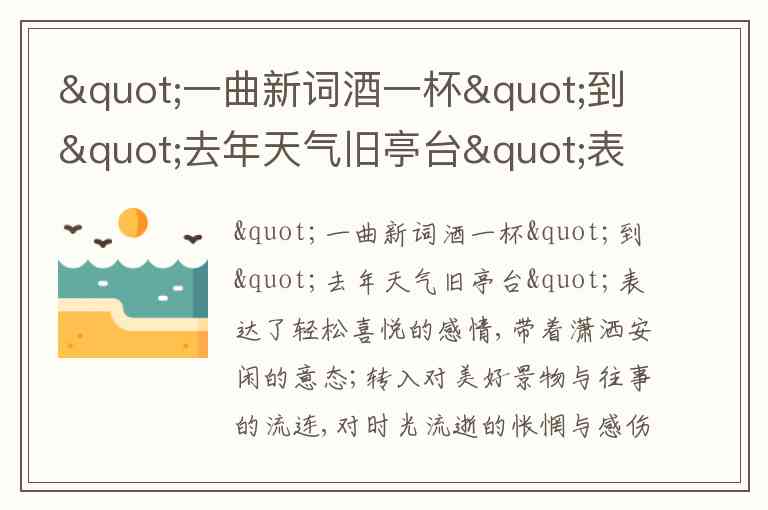 “一曲新词酒一杯,去年天气旧亭台” 出自晏殊《浣溪沙》。